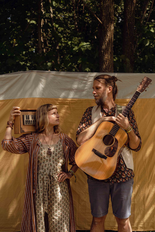 Kaŝita Kanto sind ein deutschsprachiges Singer-Songwriter-Duo, das seit der Pandemie auch in Indien zu Hause ist. Auf ihrer Tour